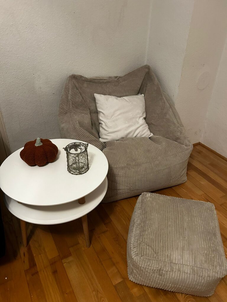 Im praktischen Test überzeugt der Sitzsack durch hohen Komfort und gute Anpassungsfähigkeit. Nach dem Aufstellen nimmt er rasch seine vorgesehene Form an. Beim Hineinsetzen sinkt man angenehm ein, ohne komplett zu versinken. Die EPS-Perlen verteilen sich gleichmäßig und passen sich flexibel an die Körperkonturen an. Das Rückenteil bietet eine stabile, aber weiche Lehne, die den Rücken gut stützt. Auch bei längerer Nutzung bleibt der Komfort erhalten. Der Sitzsack eignet sich sowohl zum Lesen, Fernsehen als auch zum Arbeiten mit Laptop in entspannter Haltung. Der beigefügte Hocker erweist sich als sinnvolle Ergänzung, da er die Beine entlastet und das Gesamtbild abrundet. Im Alltagstest auf Holzfußboden bleibt der Sitzsack rutschfest und formstabil. Kinder und Erwachsene können ihn gleichermaßen nutzen. Auch nach mehreren Stunden Sitzen bleibt das Füllmaterial weitgehend in Form, ohne merklich zu verklumpen. Der Cordstoff zeigt keine Abnutzungserscheinungen oder Verfärbungen. Im Praxiseinsatz fällt die angenehme Wärme des Materials positiv auf. Bei direkter Sonneneinstrahlung wirkt das Gewebe leicht samtig und hochwertig. Beim Verschieben hinterlässt der Sitzsack keine Kratzspuren am Boden. Selbst nach mehreren Tagen Gebrauch wirkt das Polstervolumen konstant. Die Nahtstellen zeigen sich widerstandsfähig, und es treten keine Perlen aus. Durch den abnehmbaren Bezug lässt sich der Sitzsack gut reinigen, was im Familienalltag ein klarer Vorteil ist. Der Sitzsack lässt sich zudem leicht bewegen, trotz seines Volumens. Der Innenbeutel bleibt stabil, auch wenn der Sitzsack häufiger umgestellt oder zusammengedrückt wird. Insgesamt zeigt der Alltagstest ein positives, praxisgerechtes Ergebnis mit wenigen Einschränkungen.